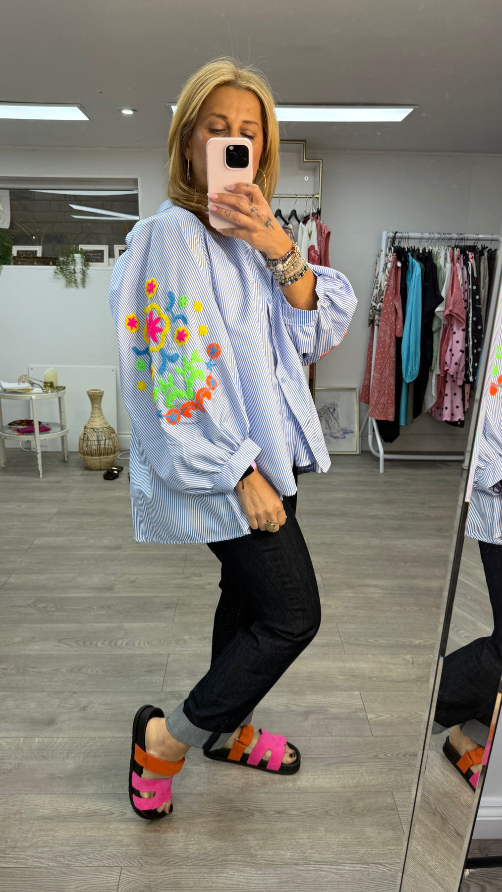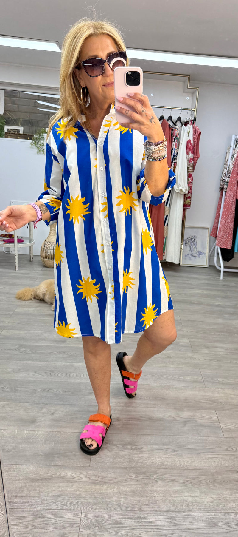 striped botanical colourful print maxi dress with puff sleeves