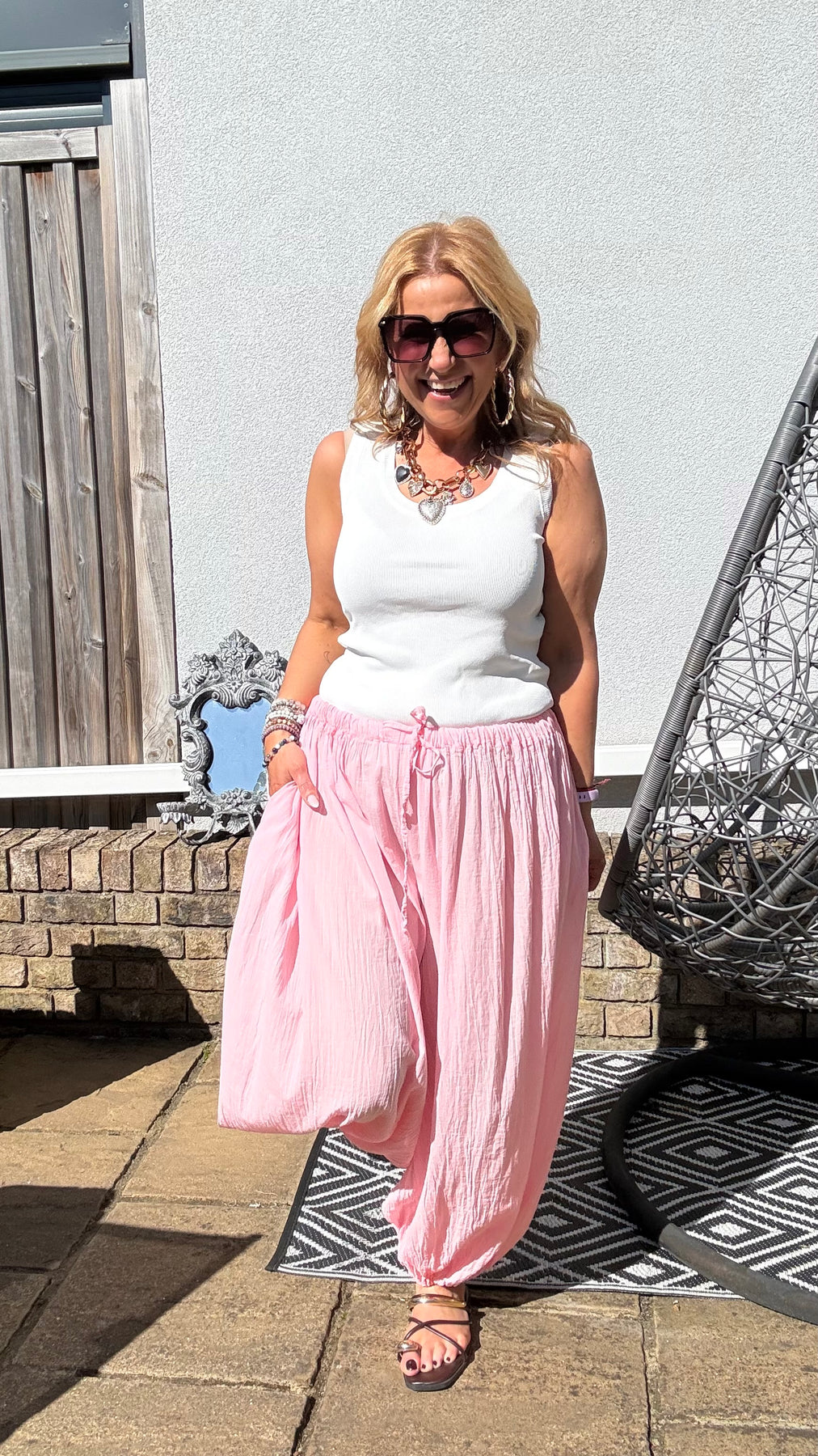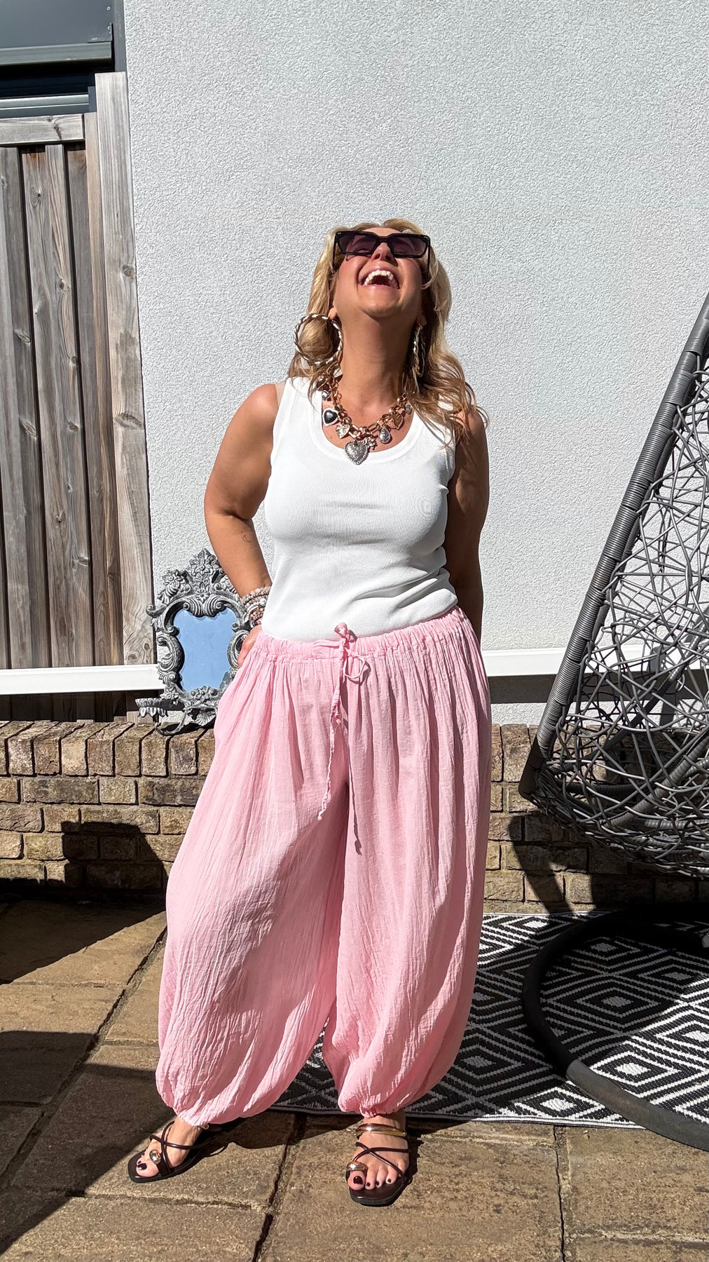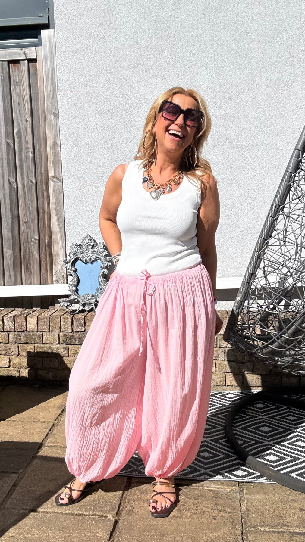 Cotton lightweight wide leg trousers