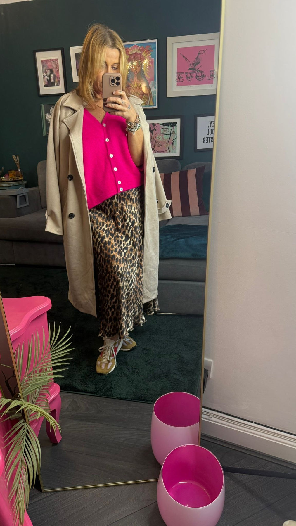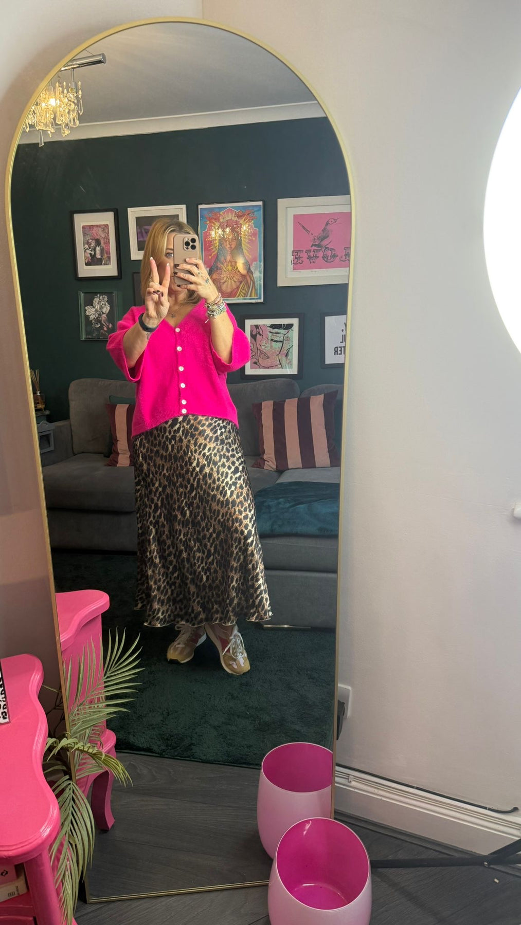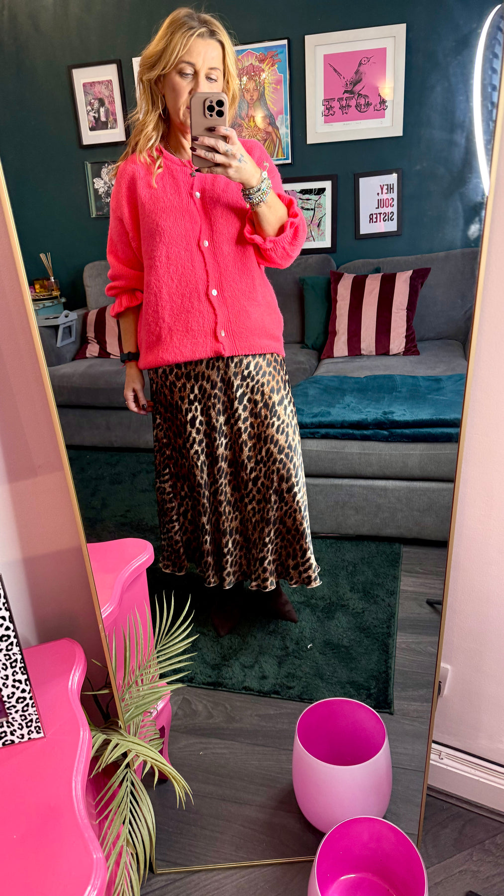 Kaia leopard satin midi skirt